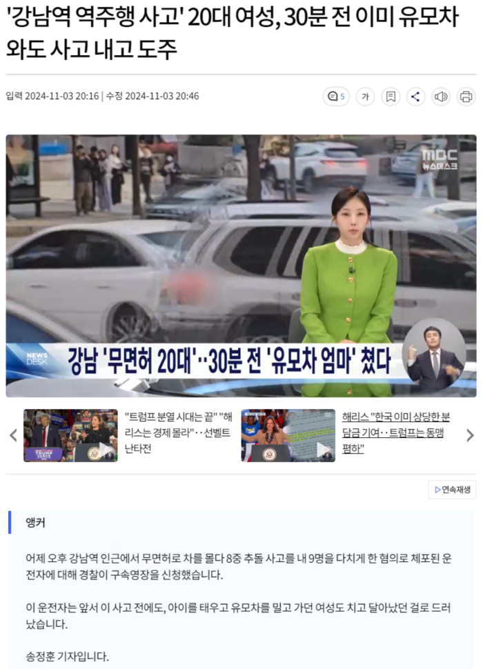 | 강남역 8중 추돌 사고.. 20대 여성 운전자 현행범 체포 (1) | 2024.11.02 |
