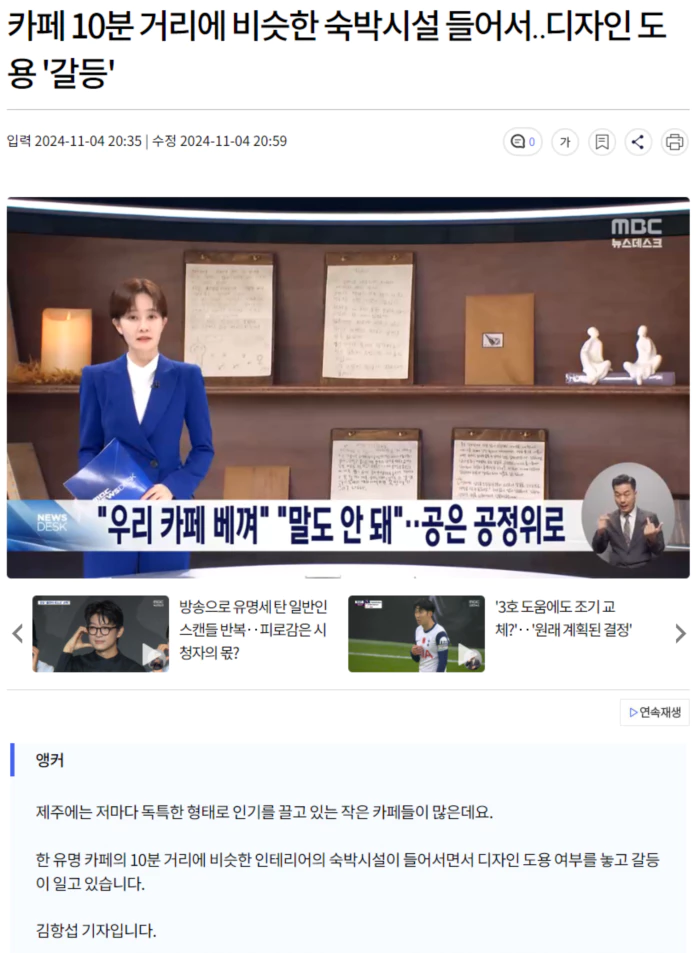 반면 숙박업체는, 나무 책장과 편지함은 숙박업과 카페 등에서 일반적으로 사용하는 콘셉트라며, 디자인 도용 의혹을 일축했습니다.