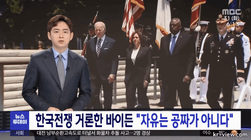 바이든 대통령은 한국 전쟁을 포함해 미군이 참전한 전쟁을 일일이 거론 하면서