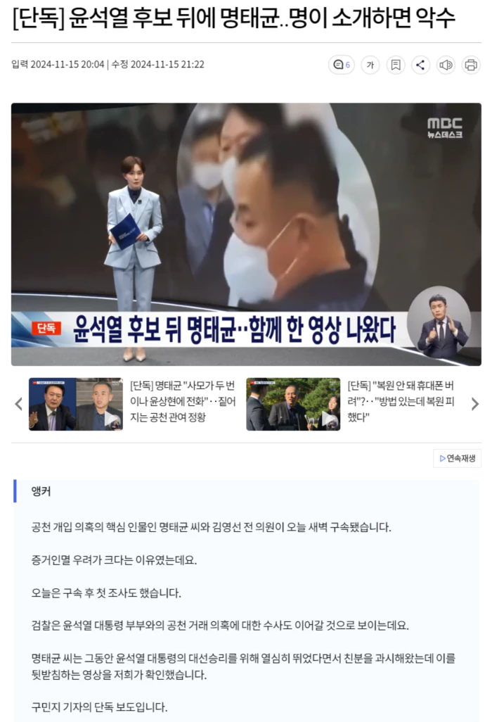 | "윤 대통령, 김태우 전 강서구청장 공천 개입".. 당사자들 전면부인 (8) | 2024.11.16 |