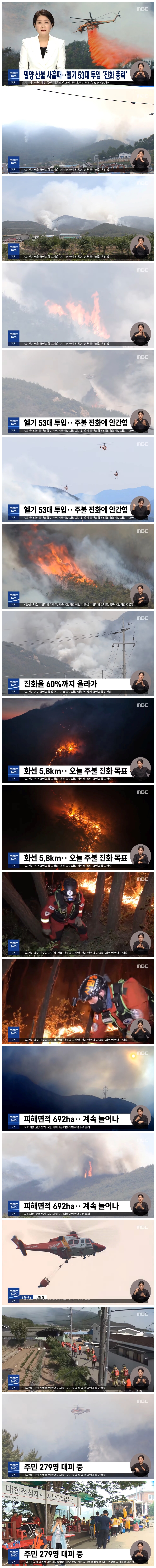특히 초고압송전선로와 농공단지, 민간보호를 위주로 진화가 이뤄졌는데요, 피해면적은 어제 저녁에 비해 100헥타르 이상 늘어난 692 헥타르로 추정되고 있습니다.