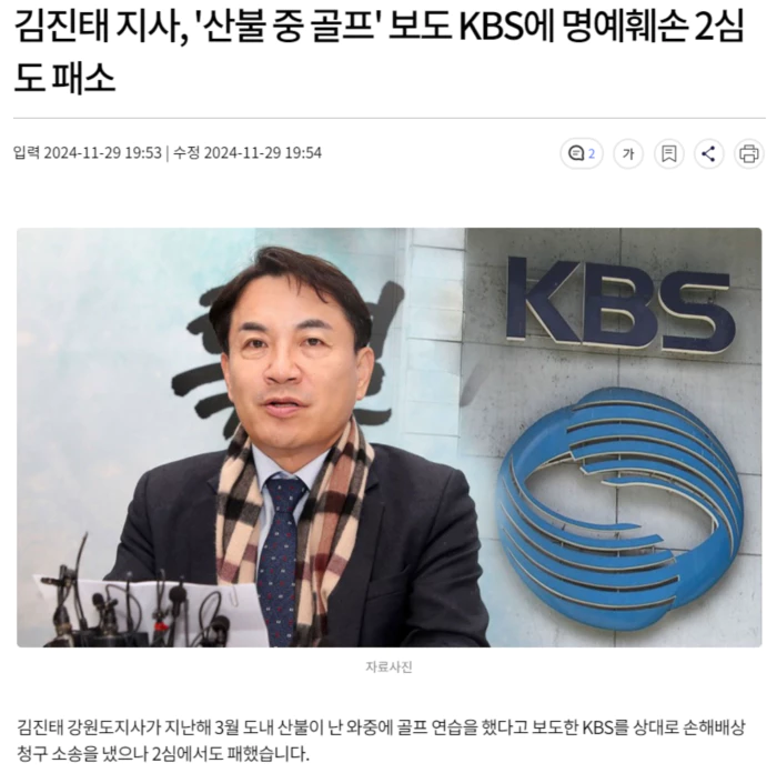 서울남부지법 민사항소4-3부는 김 지사가 KBS와 소속 기자를 상대로 낸 손해배상 소송을 1심과 같이 KBS 측이 배상할 책임이 없다고 판결했습니다.