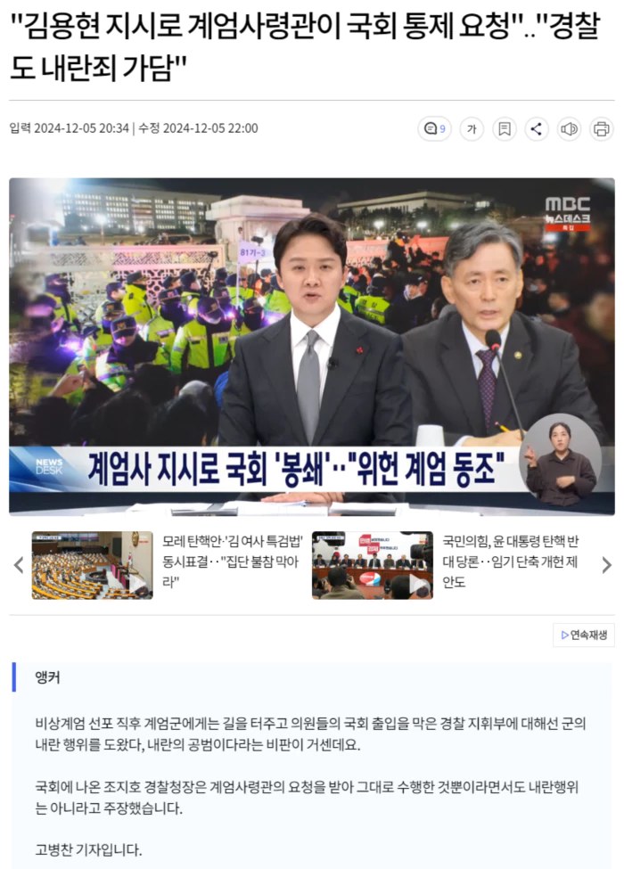 | "국회의원 막고 계엄군은 통과".. 현직 경찰관이 경찰청장 고발 (23) | 2024.12.06 |