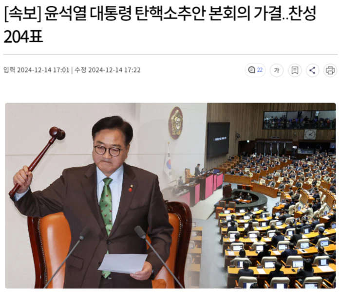 | 탄핵가결 순간 국회 앞 열광 "다시 만난 세계" 떼창 (28) | 2024.12.14 |