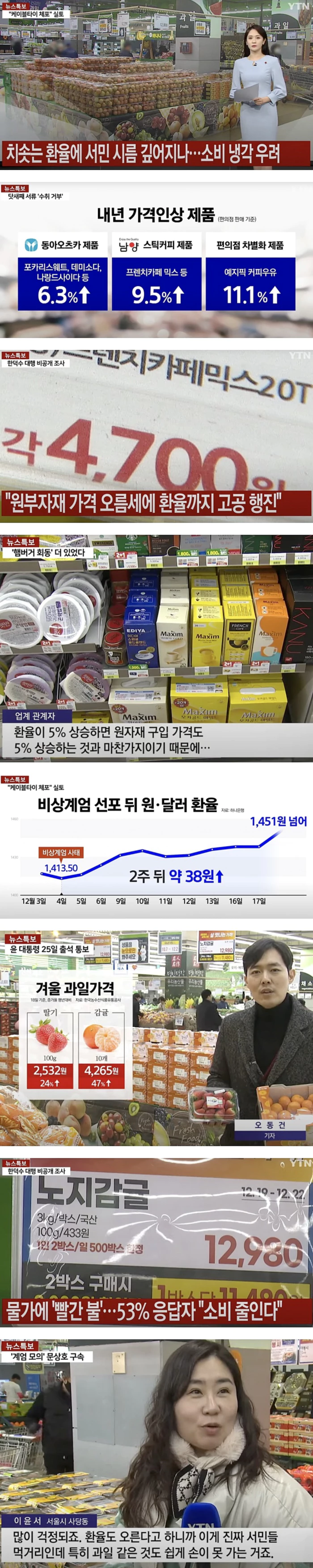 환율에 영향을 받는 가공 식품 외에도 이상기후에 작황이 부진했던 겨울 과일 가격까지 들썩이고 있습니다.