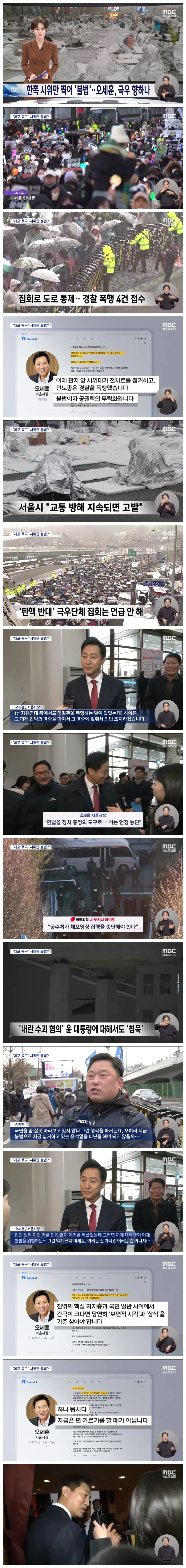 오세훈 서울시장이 "관저 앞 시위대가 차로를 점거하고 경찰을 폭행했다"며 탄핵 촉구 집회를 콕 집어 적극 대처하겠다고 밝혔습니다.