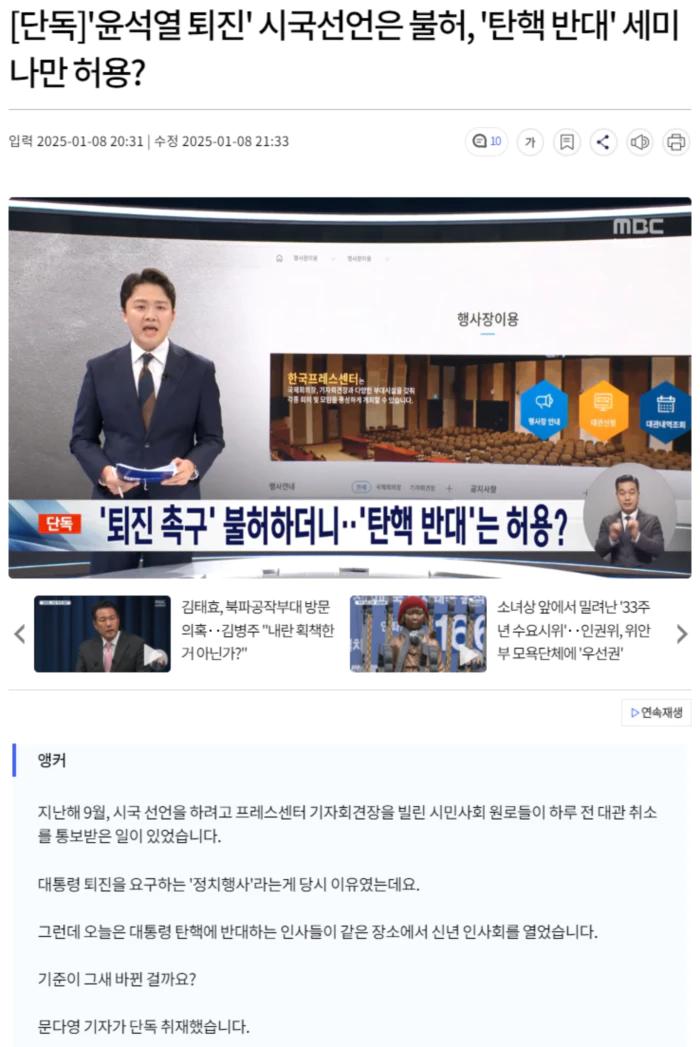 이 행사는 정치 행사가 아니냐는 질문에 언론재단은 "계엄이 정말 내란인지를 따져보는 학술 세미나라 판단했다"고 답했습니다.