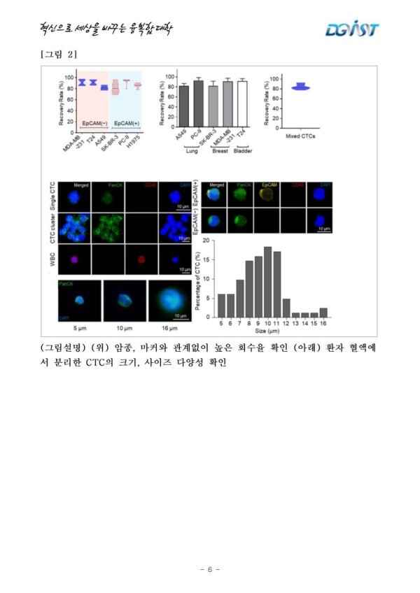 - DGIST 김민석 연구팀과 ㈜씨티셀즈, 마커나 사이즈 관계없이 모든 종류의 혈중암세포 분리 통해 암진단 기술 고도화 구현