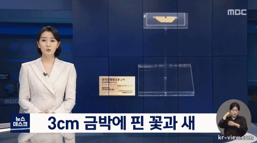 길이 3 센티미터, 손톱 두 개 정도 크기의 작은 금박에 꽃과 새를 정교한 세공술로 그려 넣었는데요.