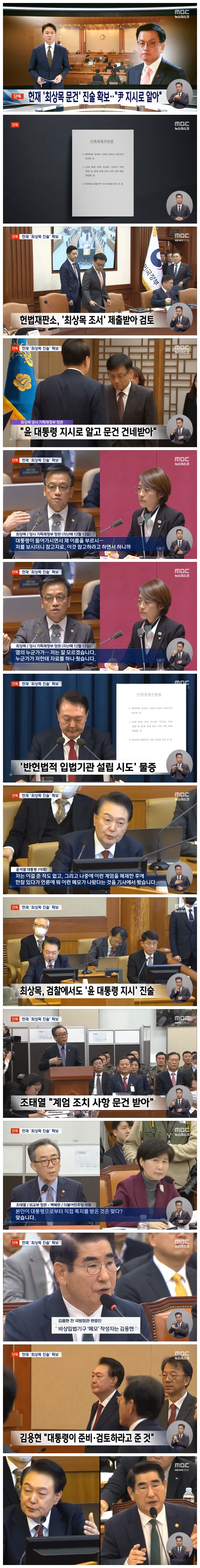 그런데 해당 문건과 관련해 검찰 조사를 받은 최상목 대행의 진술조서를 헌재가 이미 확보해 들여다보고 있던 것으로 확인됐습니다.