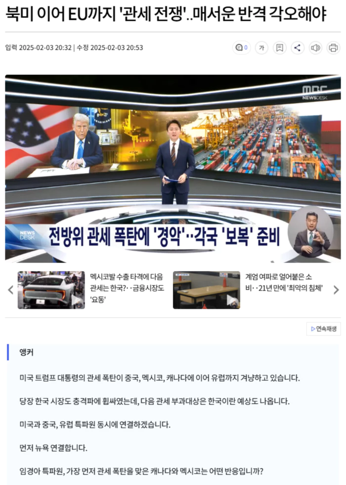| 트럼프 캐-멕-중 전면관세 서명, 캐 보복 "미국 가지 마라" (0) | 2025.02.02 |