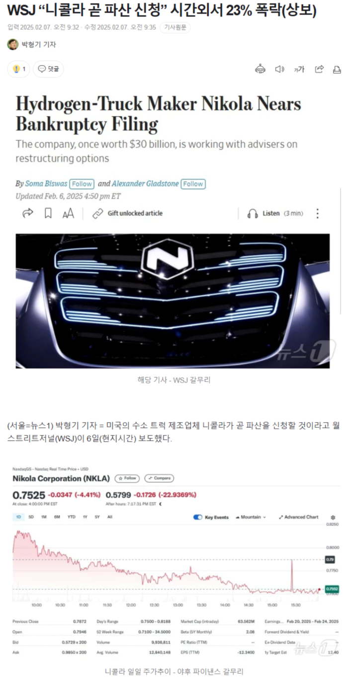 이같은 소식이 전해지자 니콜라는 시간외거래에서 23% 가까이 폭락하고 있다. 앞서 정규장도 4.41% 급락, 마감했었다.