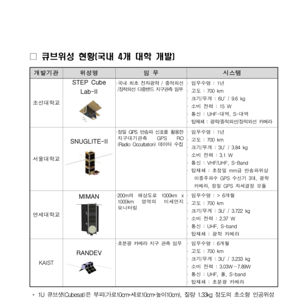 ※ 큐브위성 사출 일정 : 6.29.(조선대)/ 7.1.(KAIST)/ 7.3.(서울대)/ 7.5.(연세대)