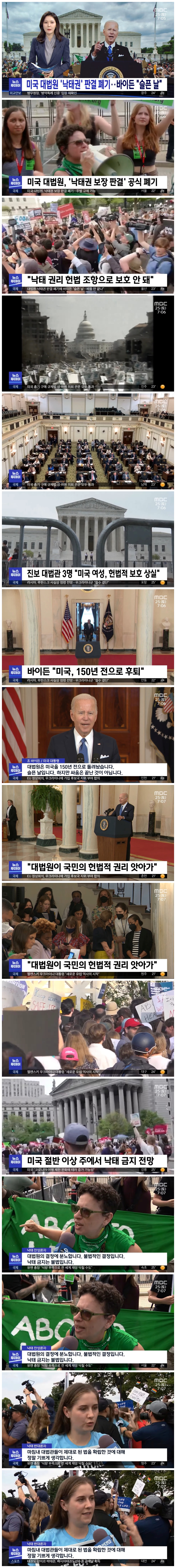 바이든 대통령은 여성의 권리를 빼앗은 것이라며 국가와 법원에 슬픈날이라고 비판했습니다.