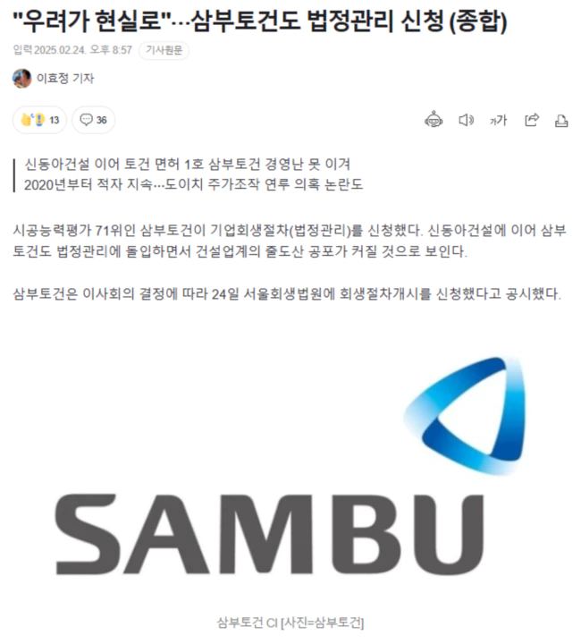 (출처 : "우려가 현실로"⋯삼부토건도 법정관리 신청)