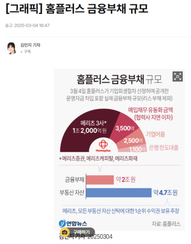 (출처 : [그래픽] 홈플러스 금융부채 규모)