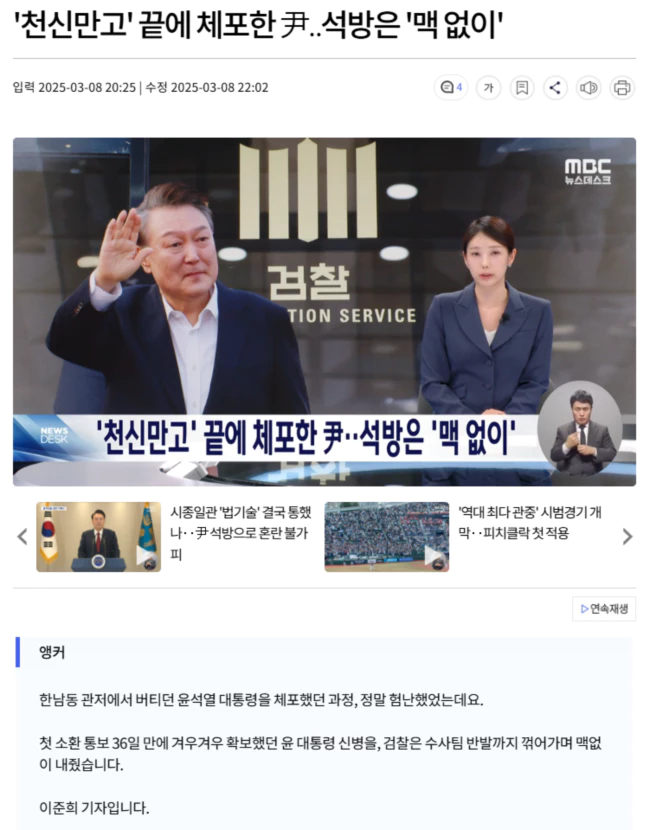 | 尹 앞에서 머뭇댄 검찰총장, 왜?.. 구속 취소 책임론도 (0) | 2025.03.08 |
