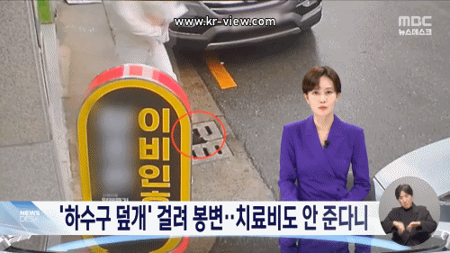 아이를 안고 길을 걷던 여성이 부서진 하수구 덮개를 밟고 넘어져 크게 다쳤습니다.