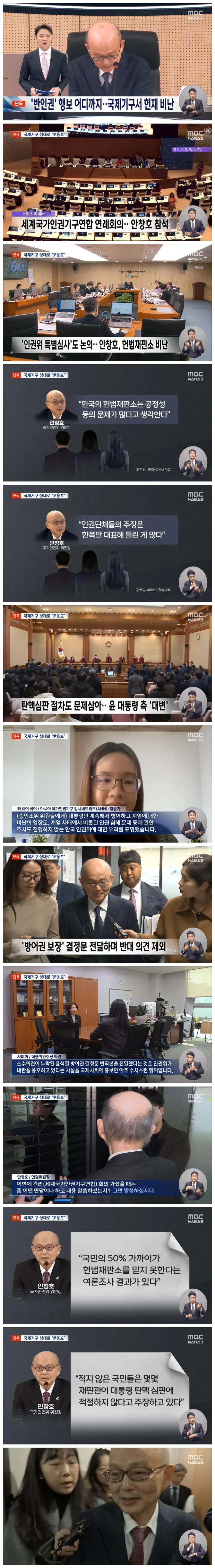 자신이 헌법재판관이었던 안창호 국가인권위원장이 국제 인권회의에 참석해, 한국의 헌법재판소에 문제가 있다고 비난한 사실이 확인됐습니다.