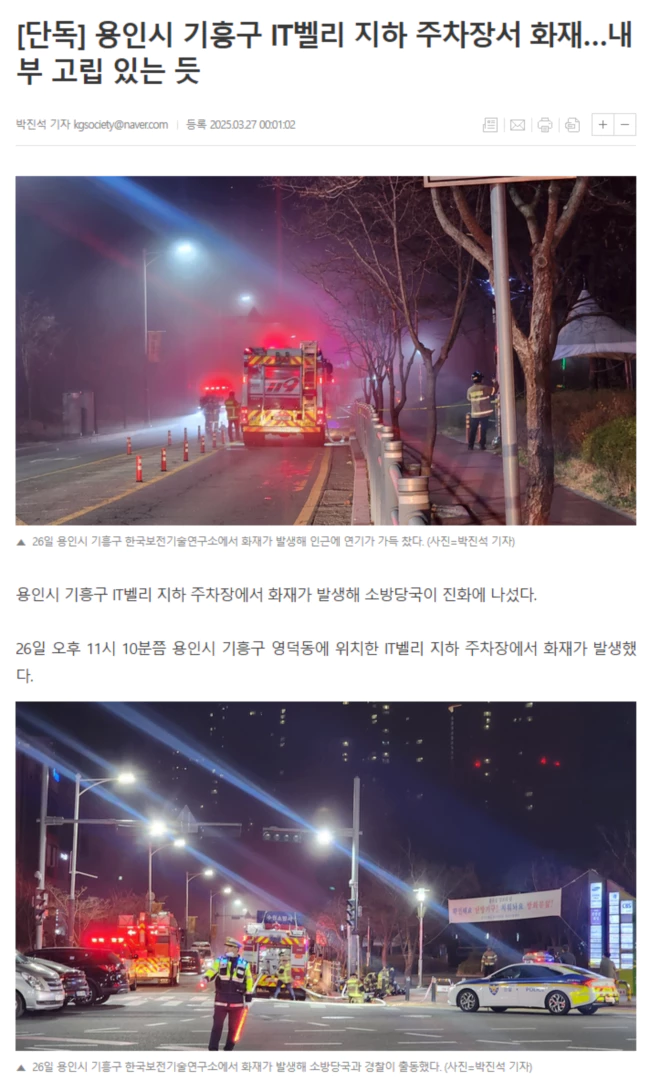 인근에 거주하는 주민 A씨는 "갑자기 화재경보가 울려 밖을 봤더니 한국보전기술연구소에서 연기가 피어오르는 모습을 봤다"며 "야밤에 갑자기 화재가 나 일단 밖에서 대기하고 있다. 큰 피해가 없길 바란다"고 했다.