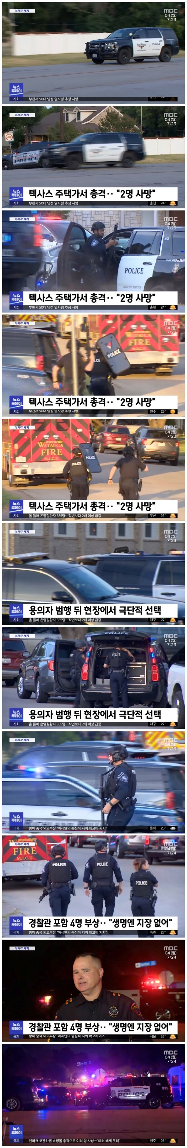 밤사이 텍사스주의 한 주택가에서 총격 사건이 발생해 2명이 숨지고 경찰관을 포함한 4명이 총에 맞아 다쳤습니다.