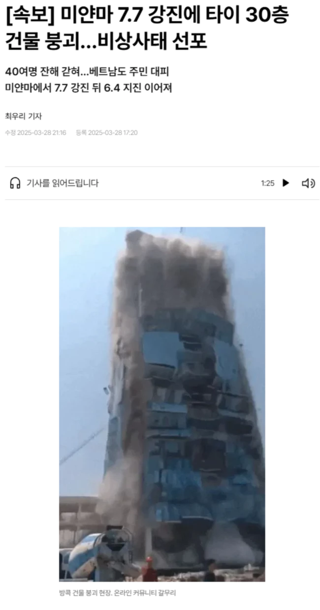 | 방콕서 건물 붕괴 '아수라장', 미얀마 규모 '7.7' 강진 (0) | 2025.03.28 |