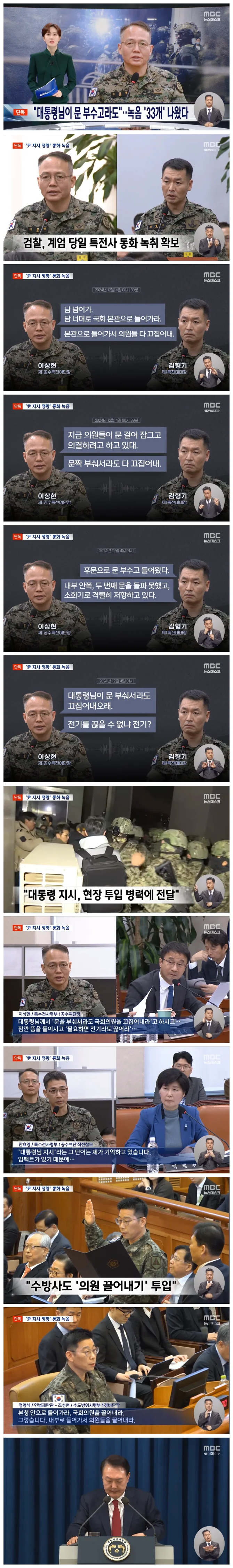 특히 이상현 특전사 제1공수특전여단장이 "문을 부수고 의원들을 끄집어내라"는 지시를 휴대전화로 반복해 내리면서 "대통령 지시"라는 점을 명확히 언급하는 내용이 담겼습니다.
