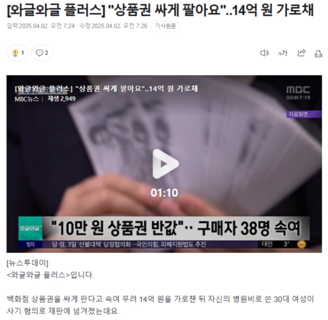 30대 여성 A 씨는 지난해 7월부터 10월까지 10만 원짜리 백화점 상품권을 절반 가격에 판다며 피해자들을 유인했습니다.