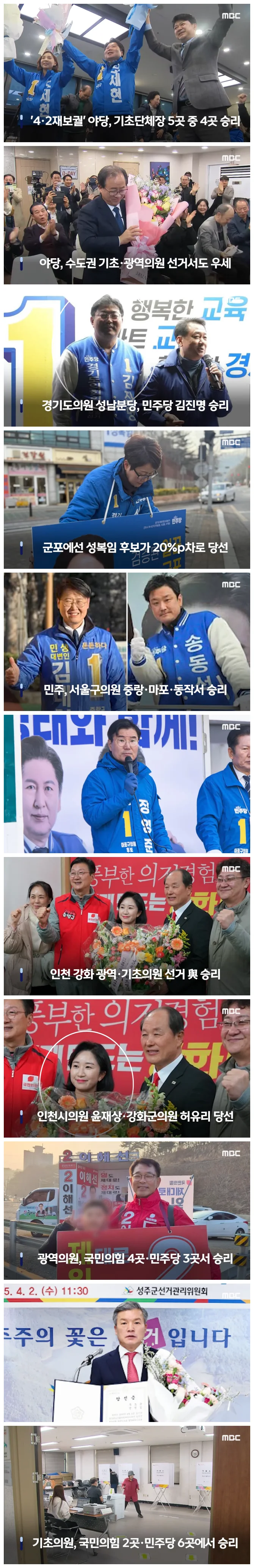 민주당은 서울 중랑·마포·동작에서 치러진 기초의원 선거에서도 모두 두 자릿수 이상의 격차로 국민의힘 후보에게 승리했는데, 특히 서울 마포구 사 선거구에서는 민주당 후보가 31%p 차이로 당선됐습니다.