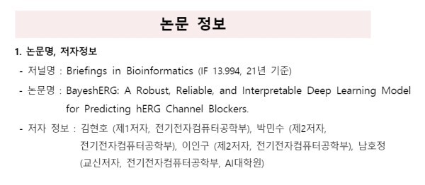 □ 지스트(광주과학기술원, 총장 김기선) 전기전자컴퓨터공학부 남호정 교수 연구팀은 심장박동을 조정하는 유전자 hERG* 채널의 활동을 방해하는 약물을 개발 단계에서 파악할 수 있는 인공지능 예측 기술을 개발했다.