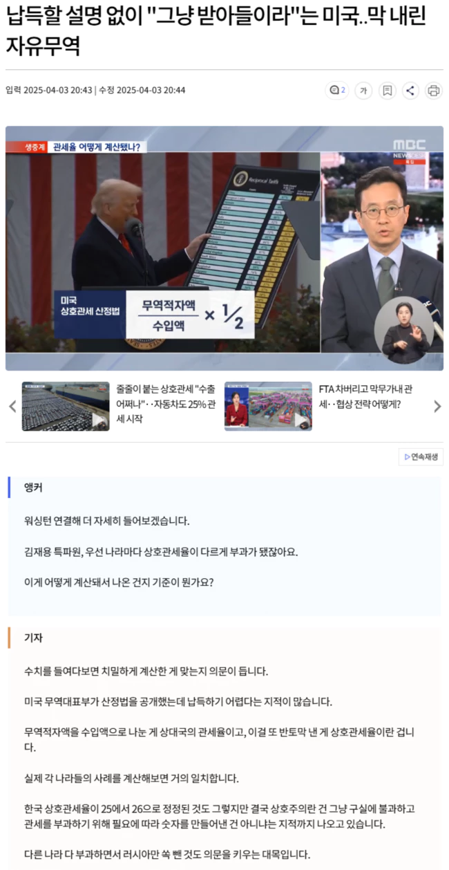 | 트럼프, 한국산 수입품에 25% 상호관세 부과 (0) | 2025.04.03 |