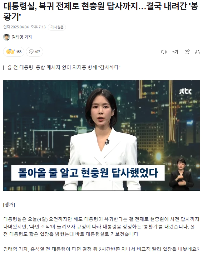 (출처 : 대통령실, 복귀 전제로 현충원 답사까지…결국 내려간 '봉황기')