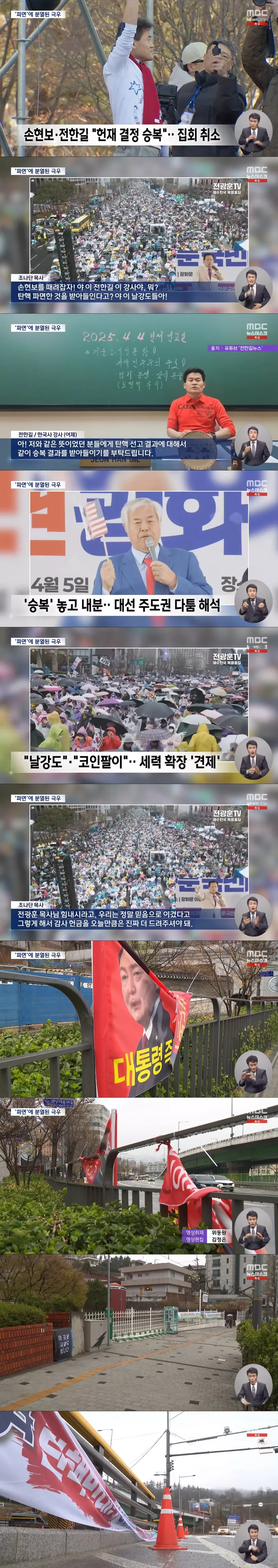 '탄핵 반대 집회' 참가자들은 파면 선고 이후 의견이 갈리며 '극우'세력들 간 주도권 싸움이 본격화 된 모습입니다.