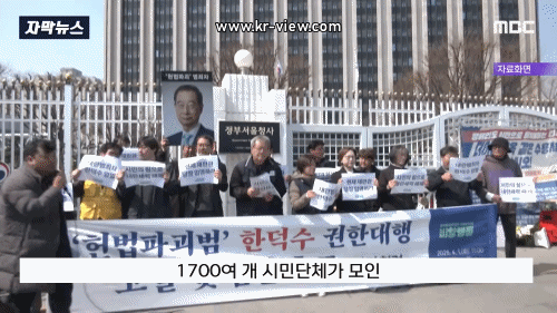 1700여 개 시민단체가 모인 윤석열즉각퇴진·사회대개혁 비상행동은 성명을 내고 "한덕수는 내란 세력을 헌법재판관으로 임명하려는 권한 남용을 즉각 중단하라"고 촉구했습니다.