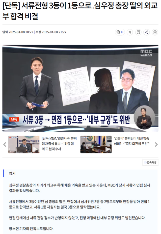 심 씨는 당시 석사학위 수여 예정자 신분으로 채용됐는데, 심우정 검찰총장과 외교부는 적법한 절차에 따른 것이라고 했습니다.