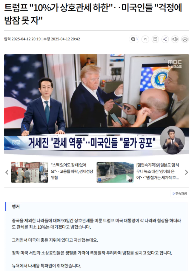 국가별 협상이 잘 진행되더라도, 상호 관세는 최소 10%로 유지하겠다는 겁니다.