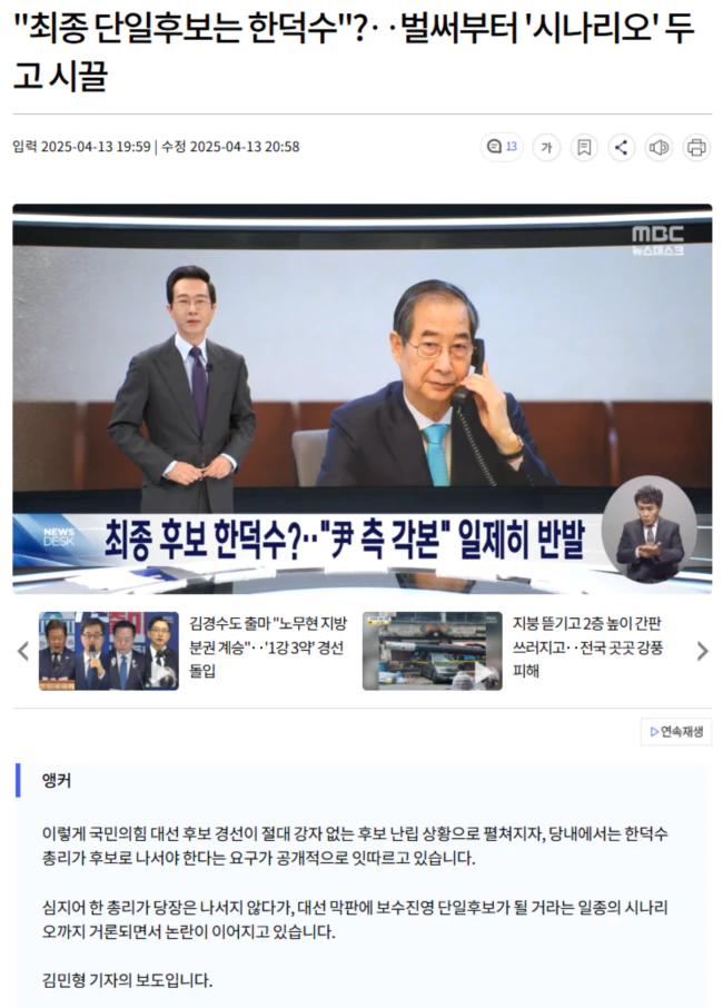 | "철딱서니들 설치지 마라".. '한덕수 연판장' 당내 발칵 (0) | 2025.04.14 |