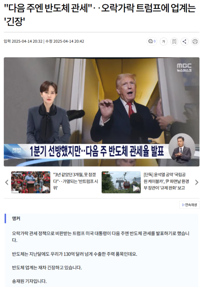 트럼프 미국 대통령이 '반도체 관세율' 발표가 다음 주라고 못 박았습니다.