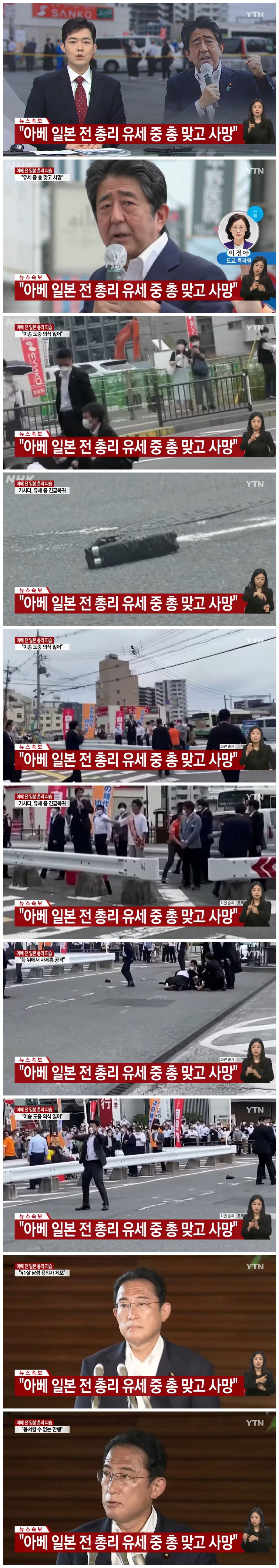 아베 일본 전 총리가 유세 중에 총을 맞고 사망했다는 소식이 현재 저희가 전해드리는 것은 NHK를 통해서 전해 드리고 있는데요.