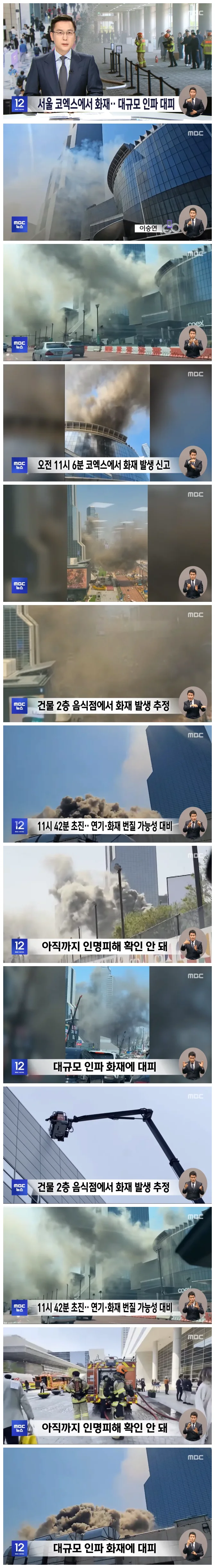 조금 전인 오전 11시쯤(4/25, 금) 서울 강남구에 위치한 코엑스에서 화재가 발생하며 대규모 인파가 대피했습니다.