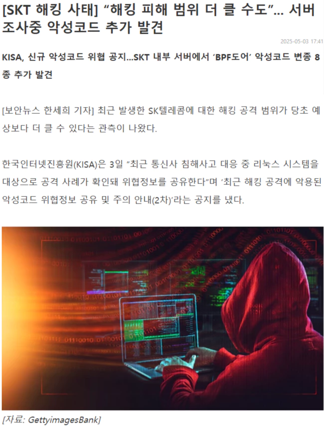 이들 악성코드는 SKT 서버 조사 과정에서 추가로 발견된 것으로, 앞서 발견된 백도어 악성코드 ‘BPF도어’의 변종으로 알려졌다.