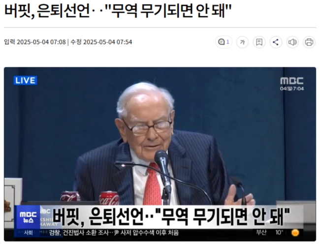 버핏 회장은 도널드 트럼프 대통령의 관세 정책에 대해서는 "무역이 무기가 되어서는 안 된다"며 "세계 다른 나라들이 더 번영할수록 우리가 손해 보는 게 아니라 우리도 그들과 함께 더 번영할 것"이라고 주장하며 부정적 견해를 드러냈습니다.