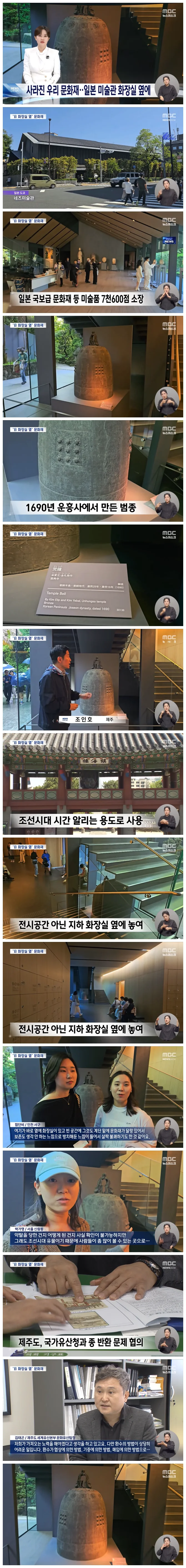 일제강점기에 사라졌던 우리 문화재가 최근 일본의 한 미술관 지하, 그것도 화장실 옆에서 발견됐습니다.
