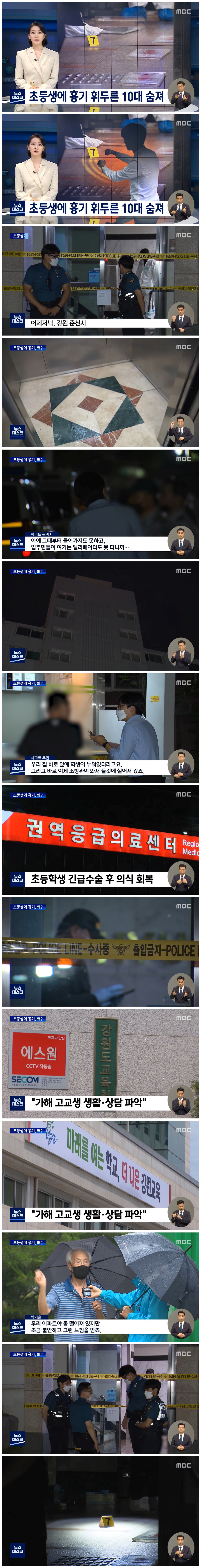 어제 강원도 춘천의 한 아파트에서 엘리베이터에 탄 초등학생에게 한 고등학생이 갑자기 흉기를 휘둘렀습니다.
