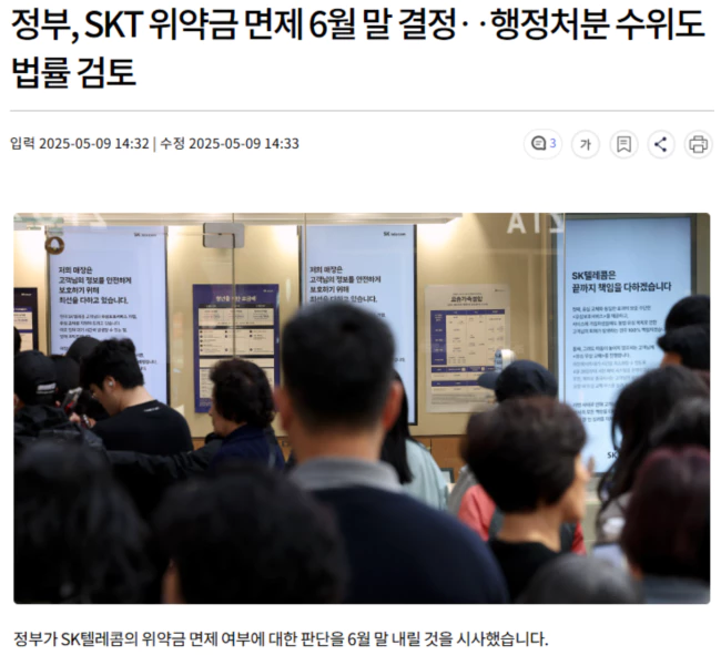 유상임 과학기술정보통신부 장관은 SK텔레콤 해킹 사태와 관련한 위약금 면제에 대해 "법무법인에 의뢰한 검토 결과를 요약해 보고 받았지만, 아직 명확하지 않다"며 "민관 합동 조사단의 결과를 봐야 판단할 수 있다"고 말했습니다.