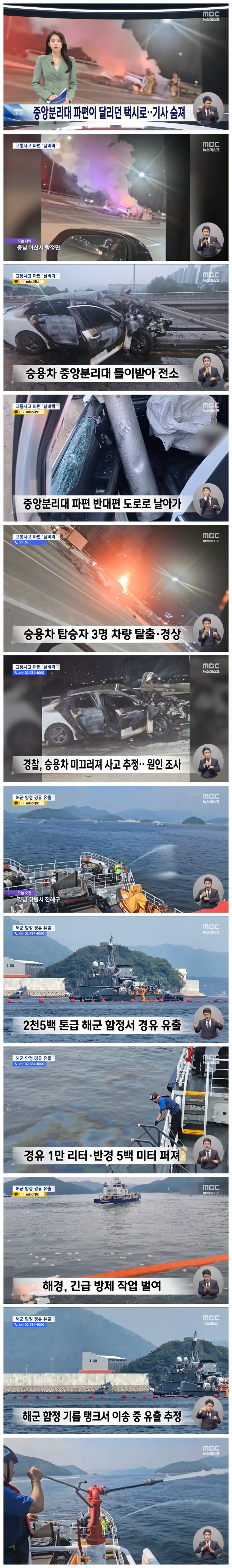경남 창원에서는 해군 함정에서 경유 1만 리터가 유출돼 방제 작업이 벌어졌습니다.