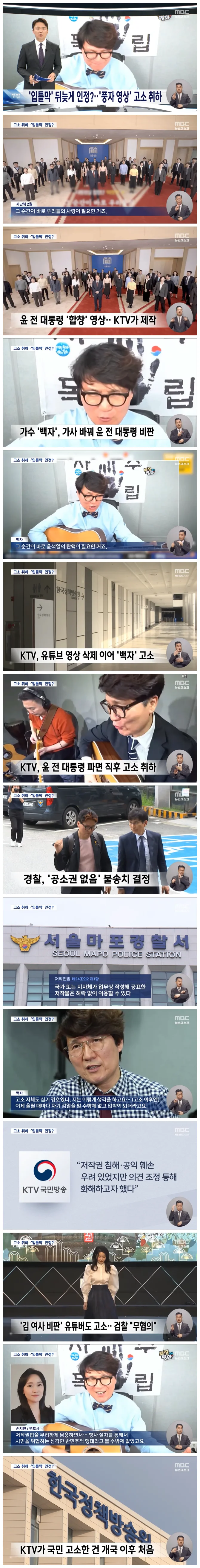 윤석열 전 대통령의 합창 영상을 풍자한 가수를 저작권법 위반 혐의로 고소했던 KTV가 고소를 취하했습니다.