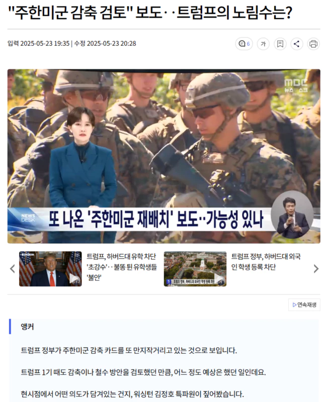 또 트럼프 대통령은 북한과의 대화 가능성을 열어두고 있어, 향후 북한에 제시할 협상 카드로 미군 감축이 논의될 수 있습니다.