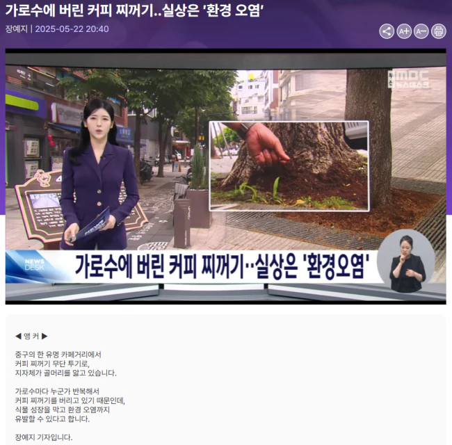 "(커피 찌꺼기가 쌓이면) 얘네들이 호흡을 제대로 못해요. 가로수가 좀 쇠약해지거나, 감염이나 병균이 들어오기가 더 쉬운 환경이.."
