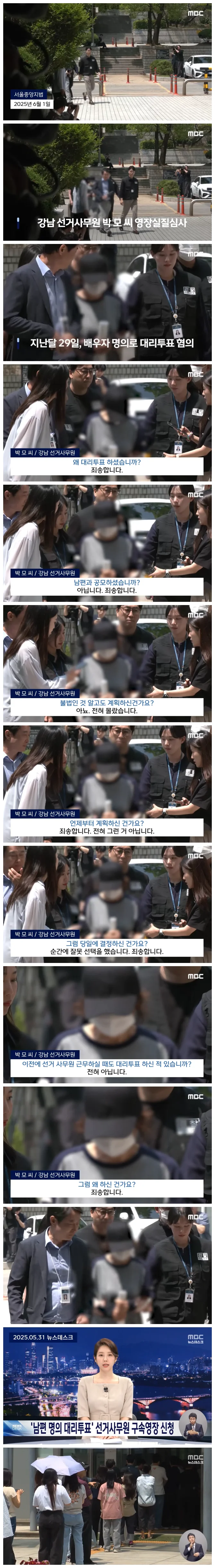 사전투표 첫날 남편 명의로 대리투표를 한 선거사무원에 대해 경찰이 구속영장을 신청했습니다.